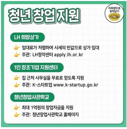 청년창업시 임대료 지원입니다.